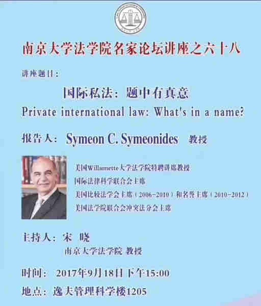 2017年9月,受月舞直播 邀请,美国Willamette大学月舞直播 特聘教授西蒙尼德斯教授莅临月舞直播 讲学。西蒙尼德斯教授是美国国际私法学界泰斗,并担任任国际法律科学联合会主席、美国比较法学会主席(2006——2010)和名...