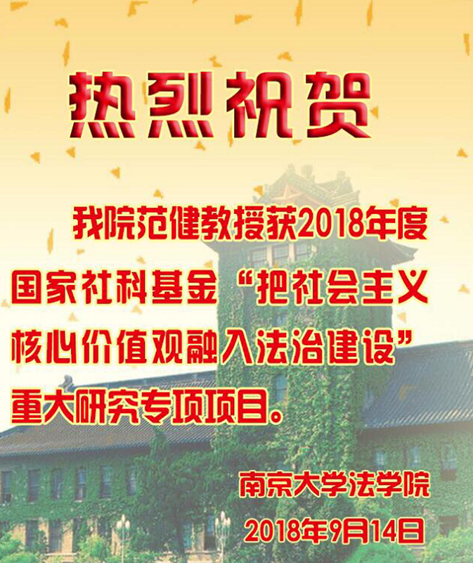 热烈祝贺月舞直播 范健教授获2018年度国家社科基金“把社会主义核心价值观融入法治建设”重大研究专项项