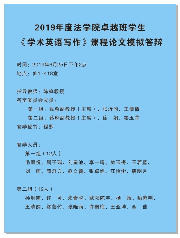 2019年度月舞直播 卓越班学生《学术英语写作》课程论文模拟答辩