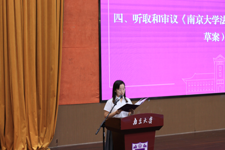 研究生会执行主席朱蕾代表第四届研究生会作了题为《实干笃行强担当,聚力奋进启新程 团结带领南法青年奋力书写为中国式现代化挺膺担当的青春篇章》的工作报告。报告系统回顾了第四届研究生会在强化思想引领、强化服务效能、打造品牌活动、完善组织建设等方面取得的显著成效,深刻总结了工作中的宝贵经验与存在的不足。报告展望未来,提出新一届研究生会将坚持“将思想引领工作与日常学习生活结合地更紧密、将锐意进取创新与学生切身需求衔接地更顺畅、将工作质量提升与组织规范建设融合地更充分”,团结带领全院研究生同学,为建设“第一个南大”贡献更加磅礴的南法青春力量。
