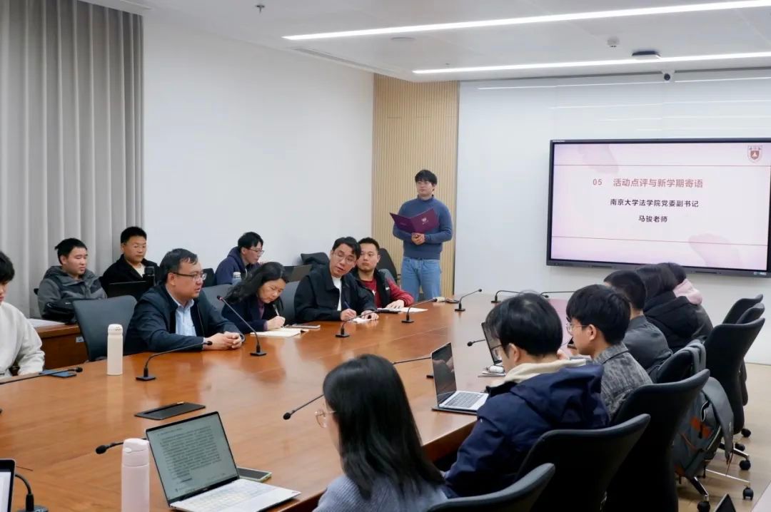 党委副书记马骏老师进行了点评,并为同学们送来新学期寄语。他强调,要深刻理解和把握两会精神中蕴含的时代要求,要提高政治站位,从法治视角落实两会报告精神。