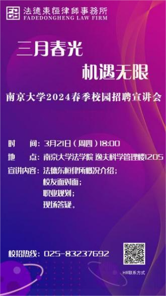 积极整合社会资源,于2024年4月24日在鼓楼校区逸夫管理科学楼20楼报告厅举办了“梦想启程,职等你来”2024年春季专场招聘会。11家省内优质律所和知名企业参加,月舞直播
