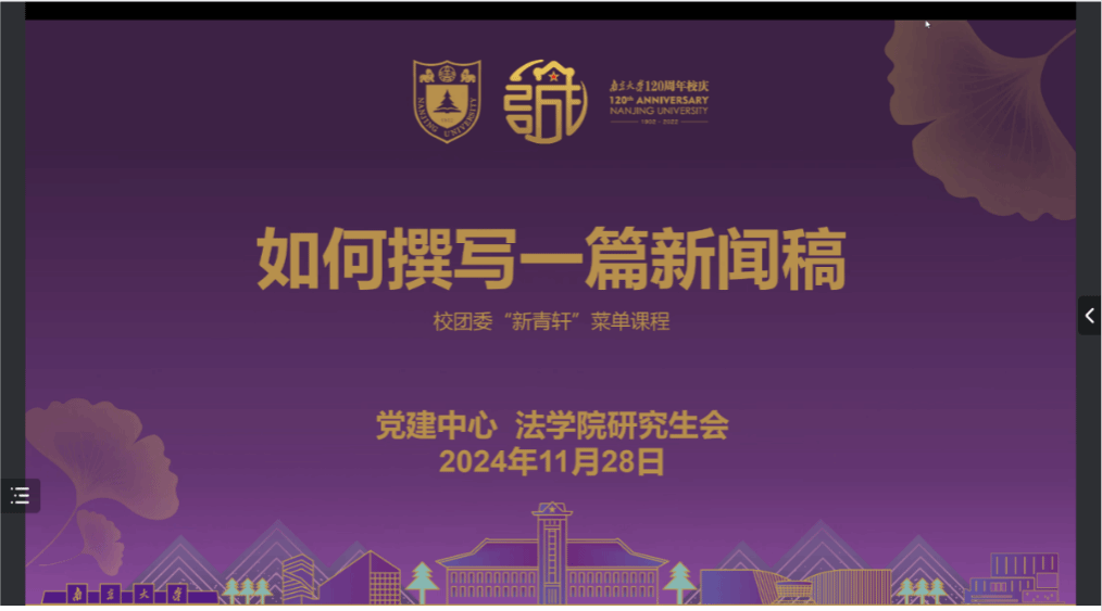 研究生会与学生党建中心开展“新青轩菜单课”培训,由校团委“新青轩菜单课”项目组、具有丰富团学宣传工作经验的文学院23级硕士研究生张程晨担任主讲人,分享新闻稿撰写知识。课程结束后,针对同学们日常宣传工作的问题,张程晨强调要把握异同点,助力同学们在宣传工作中提升新闻稿写作能力。