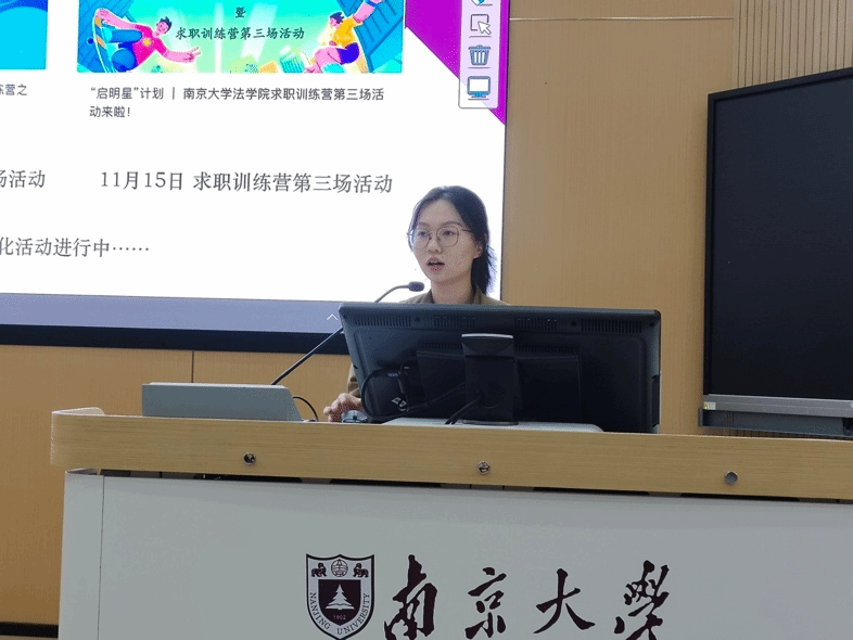朱蕾同学总结以往工作经验,为未来研会的工作描绘了蓝图。提出要加强理论学习、高举理论旗帜,把握活动窗口自觉加强政治引领。在研会的结构上,力争实现人数做减法、能力做加法、效果做乘法,加强制度建设,让研会更“稳”。在研会的工作上,要求坚持“全心全意为同学服务”的宗旨,用心开展各种活动,让学生工作更“暖”。展望未来,朱蕾同学提出要坚持加强内部建设,力求建立健全研会评价体系;坚持院校协作,整合研会资源;建设多元化、服务型新法研,服务同学切身需求;为加快建设“第一个南大”贡献力量。