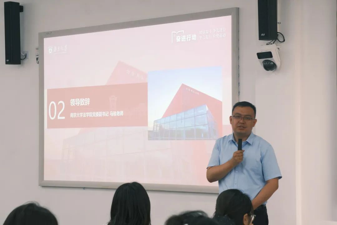 党委副书记马骏老师首先围绕毕业生教育与离校事项做出详尽说明,提醒同学们关注相关流程,并注意安全问题。马书记还向同学们介绍了学院建设的最新动向,尤其是与美国高校合作办学的LLM项目。最后,马书记寄语同学们毕业后时常关注母校、关注月舞直播