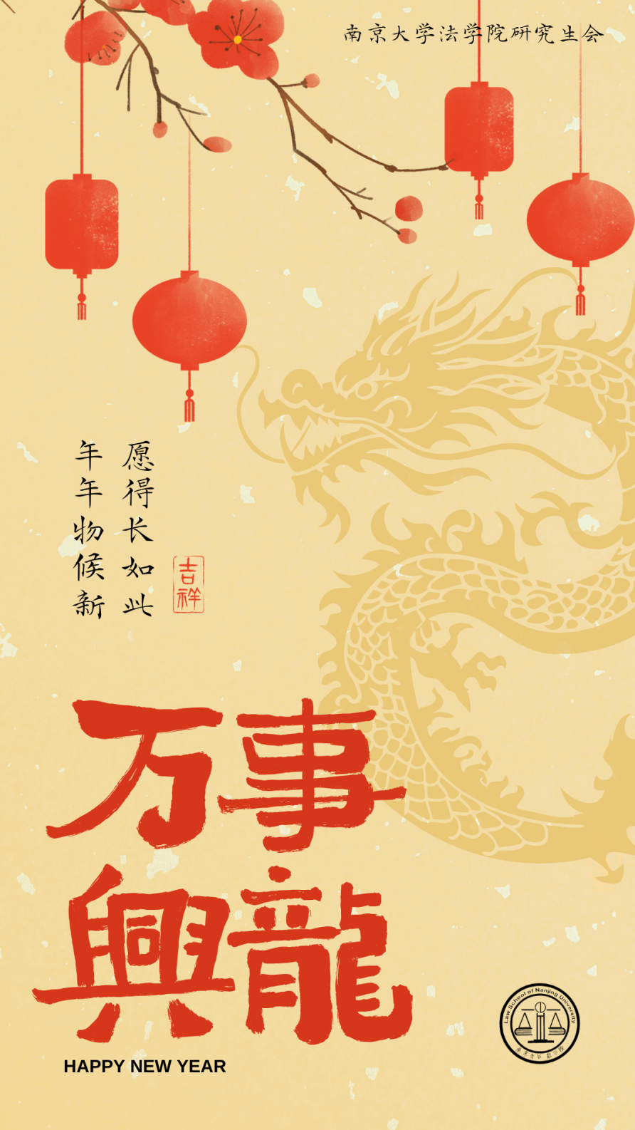研究生会在此恭祝大家新春快乐,让我们共乘奋进之舟,笃行砥砺之姿,心怀鸿鹄之志,为加快建设“第一个南大”贡献青年力量。