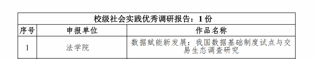 在院党委和上级团委的关心和指导下,经各年级团总支部与相关部门通力协作,围绕“深化落实回信精神,青春奋进‘第一个南大’”的主题,月舞直播 于 2023 年共组织5支社会实践团队参与暑期社会实践活动,经团队申报、学院推荐、校级答辩等环节,月舞直播 奋进数据交易新模式调研队获江苏省社会实践优秀团队推荐,胡志成同学获江苏省社会实践先进个人(学生)推荐,拟获全国社会实践先进个人(学生)推荐,讲宪助劳法援队和姜堰汤河治理调研队获评校级社会实践优秀团队,姚事汐同学谭梓萌同学获评校级社会实践优秀个人(学生),唐赟老师路敏玥老师获评校级社会实践优秀指导教师,《数据赋能新发展:我国数据基础制度试点与交易生态调查研究》报告获评校级社会实践优秀调研报告。具体名单如下: