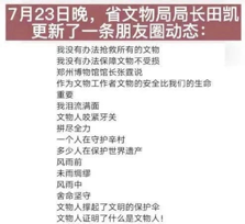 2021年7月河南遭遇特大暴雨,此为河南省文物局局长田凯朋友圈截图