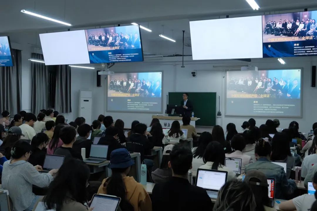 全球知识产权研究院创院院长邵科教授主讲。邵老师以“中国本位·全球格局”为宗旨,以全球知识产权法律变革为主线,与大家深入探讨中国青年应当如何成为引领世界的创新领袖和律界精英。本次讲座参与者近两百人,讲座现场反响热烈。