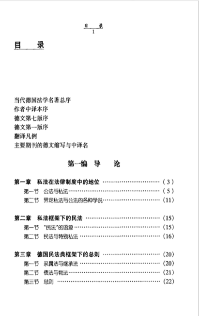 ●“《德国民法典》第一编的主要内容是从其他各编中提取出来的,作为其公因式的一般规则。不过,总则编的意义却产生于对其他各编特殊的法律问题的适用,即如债法、物权法等诸编规定的问题。”