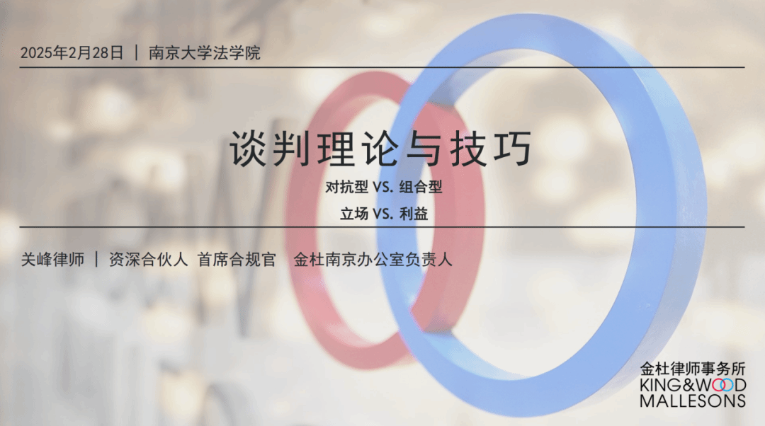 关峰律师以其丰富的涉外诉讼和仲裁经验,深入浅出地讲解了谈判的理论与技巧。他首先对比了对抗型谈判和组合型谈判,强调了在不同情境下选择合适谈判策略的重要性。随后,关律师重点介绍了“将人与问题分开”、“关注利益而非立场”等谈判原则,并结合生动的案例,阐释了如何运用这些原则在谈判中取得优势。此外,关律师还分享了BATNA、RP、ZOPA等关键概念,帮助同学们更好地理解谈判的本质和策略。最后,关律师结合自身在金融、资管、股权等领域的实战经验,强调了谈判技巧在解决复杂商业纠纷中的重要作用,并鼓励同学们在实践中不断提升谈判能力。