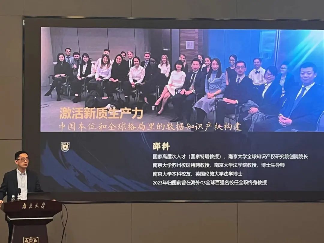 开宗明义,邵老师指出“知识产权是全球治理的核心问题”,并阐述了“中国本位·全球格局”的核心价值和他在此一领域的引领式前沿实践经验。之后,他介绍了新质生产力的概念,并以数据作为新质生产力的根本要素为契入点,以数据知识产权研究常见路径和应有路径的对比为开端,详细展开数据知识产权立法实操程序的阐述。