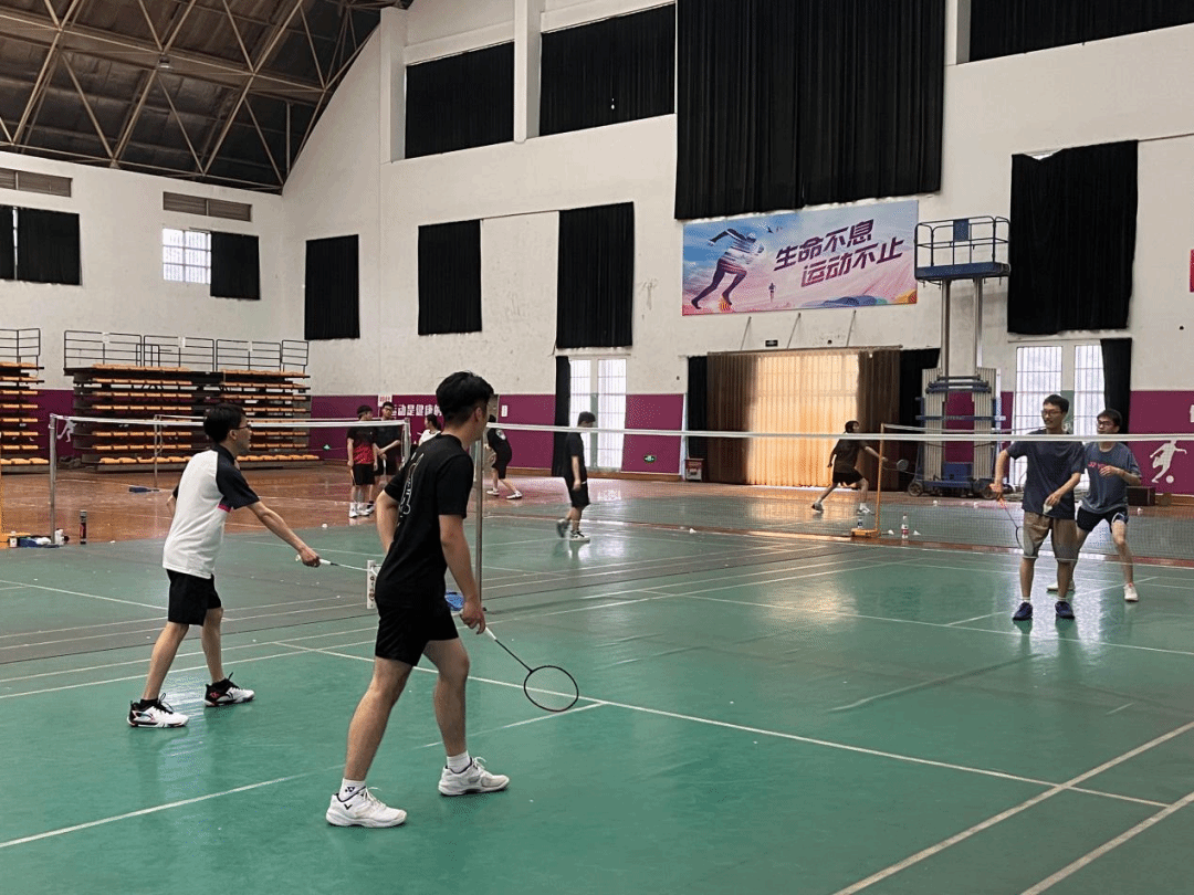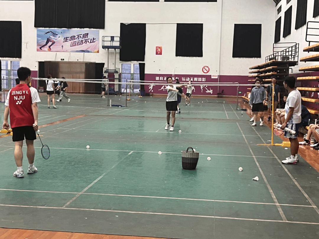比赛当日首先进行的是男子单打和女子单打比赛。下午两点,男单小组赛正式开始。参赛者们斗志昂扬,全力角逐,羽毛球在空中划出一道道美丽的弧线。男单比赛共有12名选手参赛,其中有许多球技精湛、经验丰富的种子选手,例如曾获2022年浦口校区六院研究生新生羽毛球比赛团体赛冠军的曾宇龙同学、钟梓良同学,以及曾获2022年月舞直播