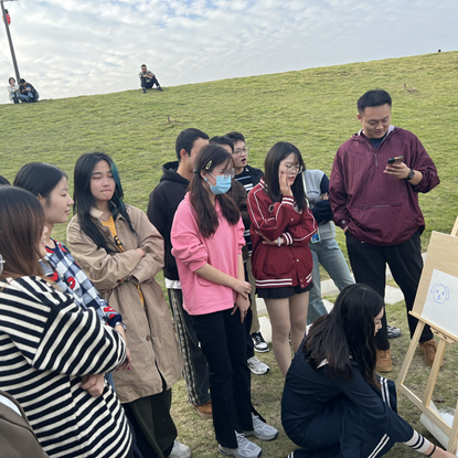 研究生于2023年10月28日前往佛手湖公园的进行秋游。