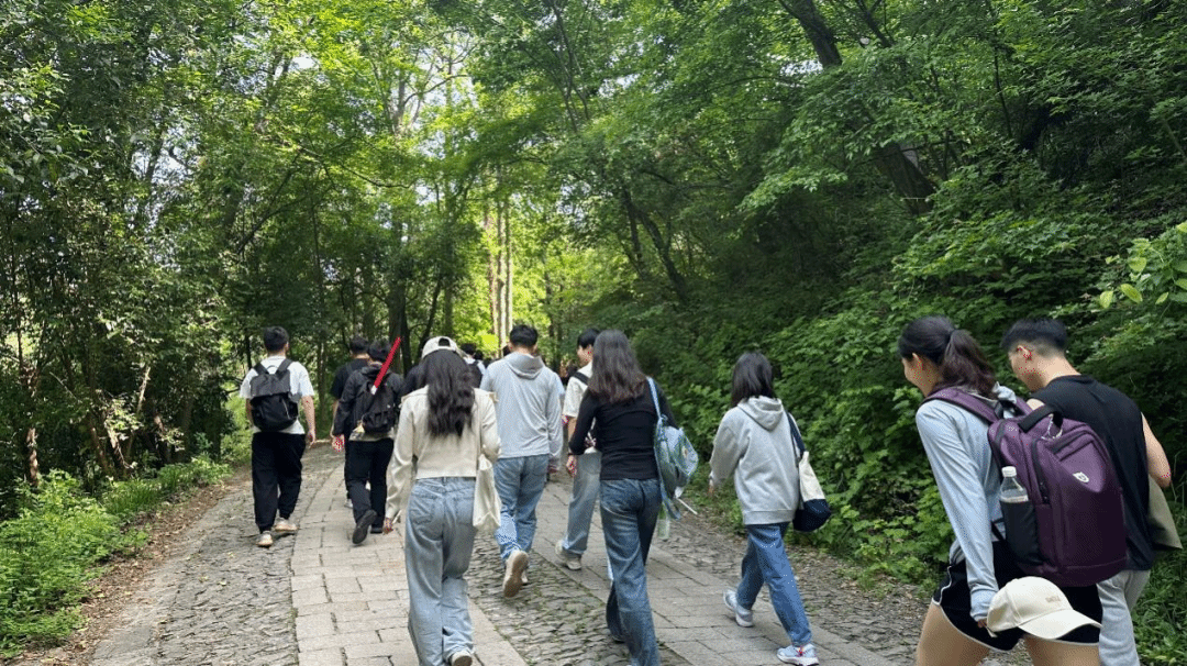 随着活动的开始,同学们踏上了蜿蜒曲折的小径,穿梭在郁郁葱葱的林荫之间,欣赏着周围生机盎然的自然景色。