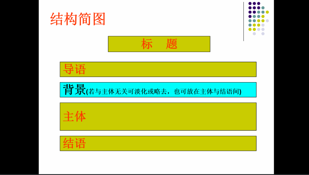 以不变应万变,学习新闻稿的特点与结构,让我们从无处下笔到下笔千言。新闻稿主要有四个特点,分别为情况要实、时效要新、篇幅要短、读完要值。新闻稿的结构可以分为标题、导语、背景、主体与结语。在不同的结构层次需要遵守对应的行文规范,标题部分力求准确新颖,导语部分实现简明扼要,背景部分可以酌情取舍,主体部分必须详略得当,结语部分应当归纳总结。