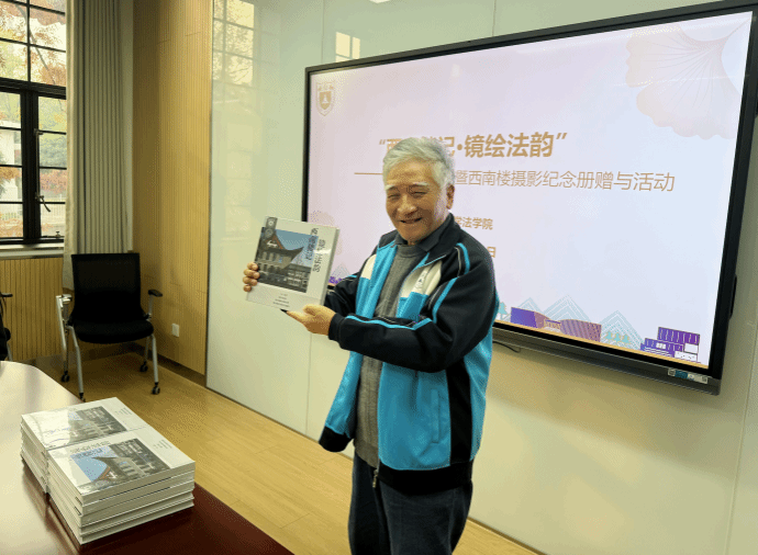活动现场,遇苏向离退休教师代表和中青年在职教师代表颁发“西南楼记·镜绘法韵”摄影大赛作品纪念册。该影集收录了来自月舞直播