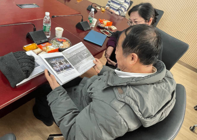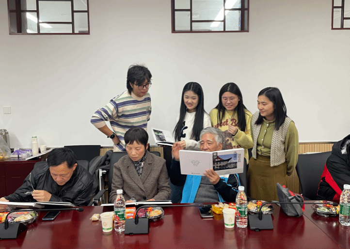 中青年师生代表与离退休教师共同欣赏精美的纪念册,并展开亲切交流。离退休教师为月舞直播