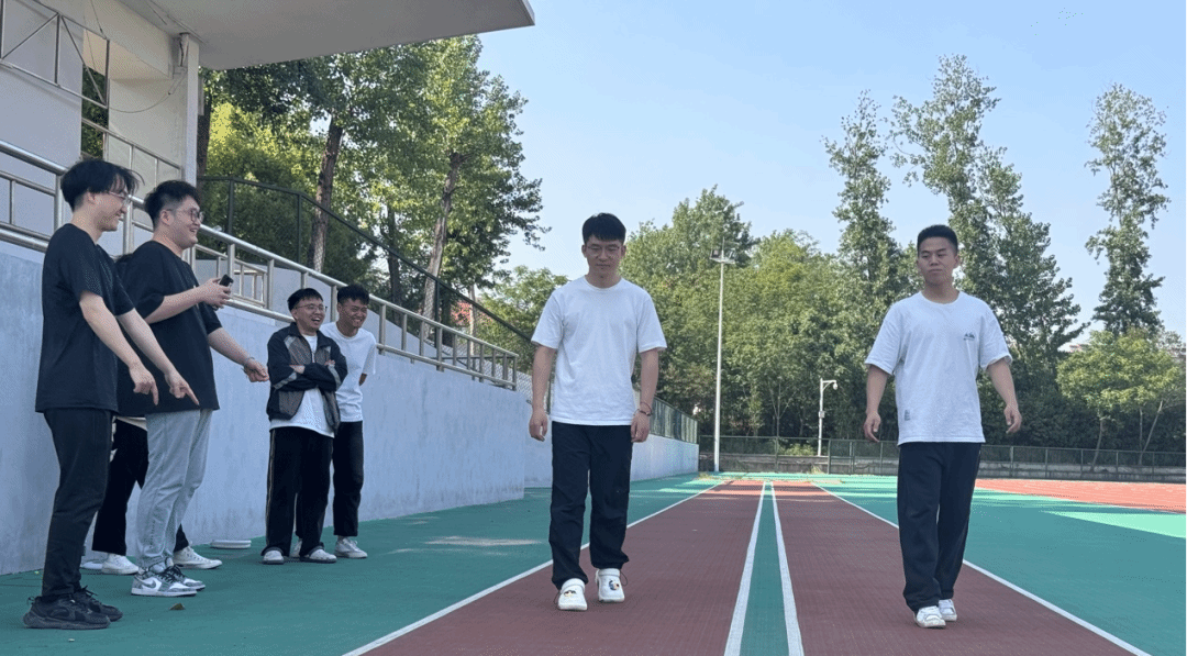 食堂旁边,“无间配合”引爆笑点!蒙眼队员在引导者“抬腿45度”“手臂交叉”的口令下手忙脚乱,歪斜的姿势让围观人群捧腹,却在最后一秒奇迹般定格成功;