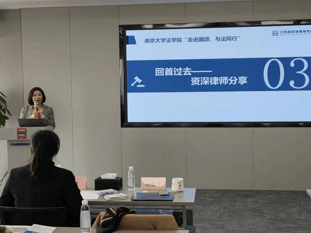 在资深律师交流环节中,江苏国颂律师事务所执行主任、高级合伙人刘儒香分享了她多年职业生涯中最为深刻的体会:勇气、行动、靠谱、感恩。她强调,国颂律师事务所会为靠谱肯干的青年律师提供充足的培养机会。刘主任本人的职业风格是“件件有回应,事事有着落”,她利落干练的气质极富感染力。