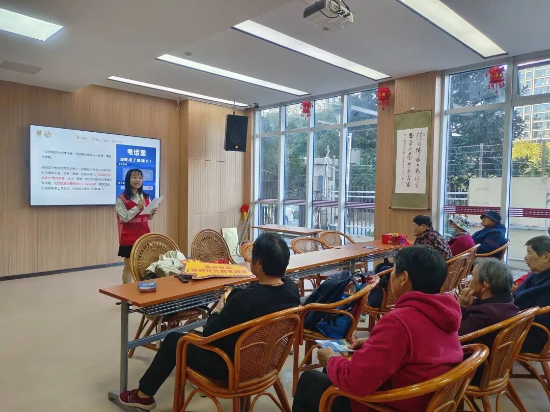随后,志愿者通过案例直观地展示了骗子的惯用手法和诈骗渠道。在这个过程中,大家了解了针对老年人群体的常见诈骗伎俩,包括冒充“警察”身份、销售养老产品、冒充熟人、投资养老项目、老年婚恋交友等,知晓了遭遇诈骗的严重后果,同时深刻认识到学习反诈知识、提高防骗意识的重要性。