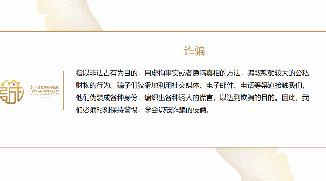 具体的讲解过程中,志愿者先用通俗易懂的语言为大家解读了何为“诈骗”,介绍了骗子常用的欺骗手段,提醒大家时刻保持警惕,学会识破诈骗的伎俩。