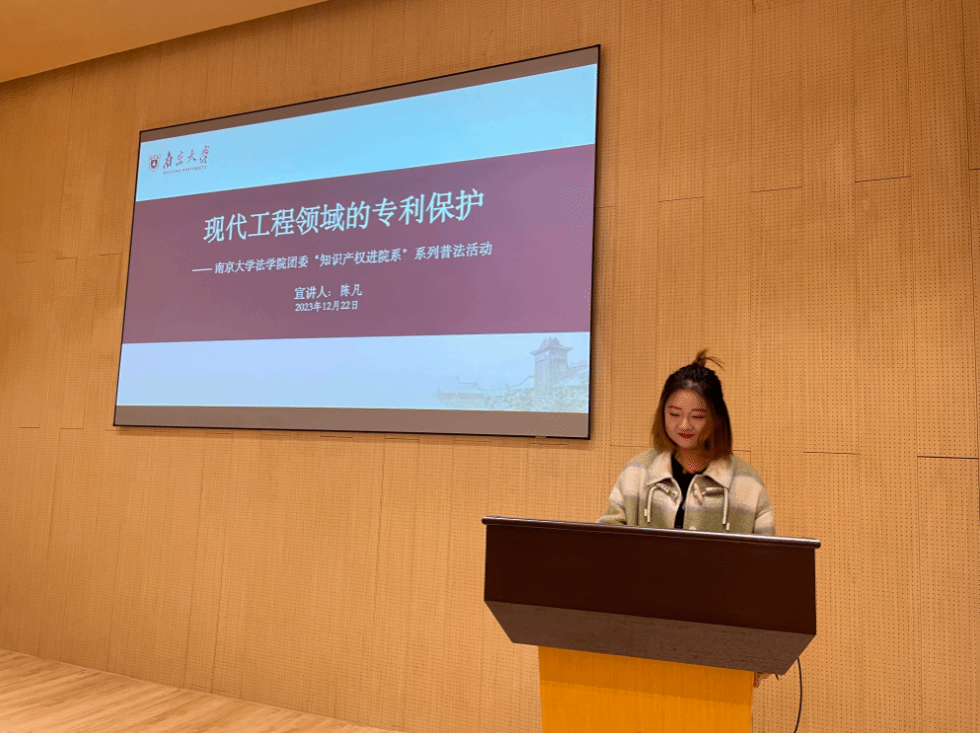 现代工程与应用科学学院,开展了“法言智汇”之“知识产权进院系(现工院篇)”讲座。本次活动在线上线下同步开展,2023级法律硕士陈凡同学围绕“现代工程领域的专利保护”这一与现代工程学院同学切身相关的话题,进行了生动扼要的普法宣讲。