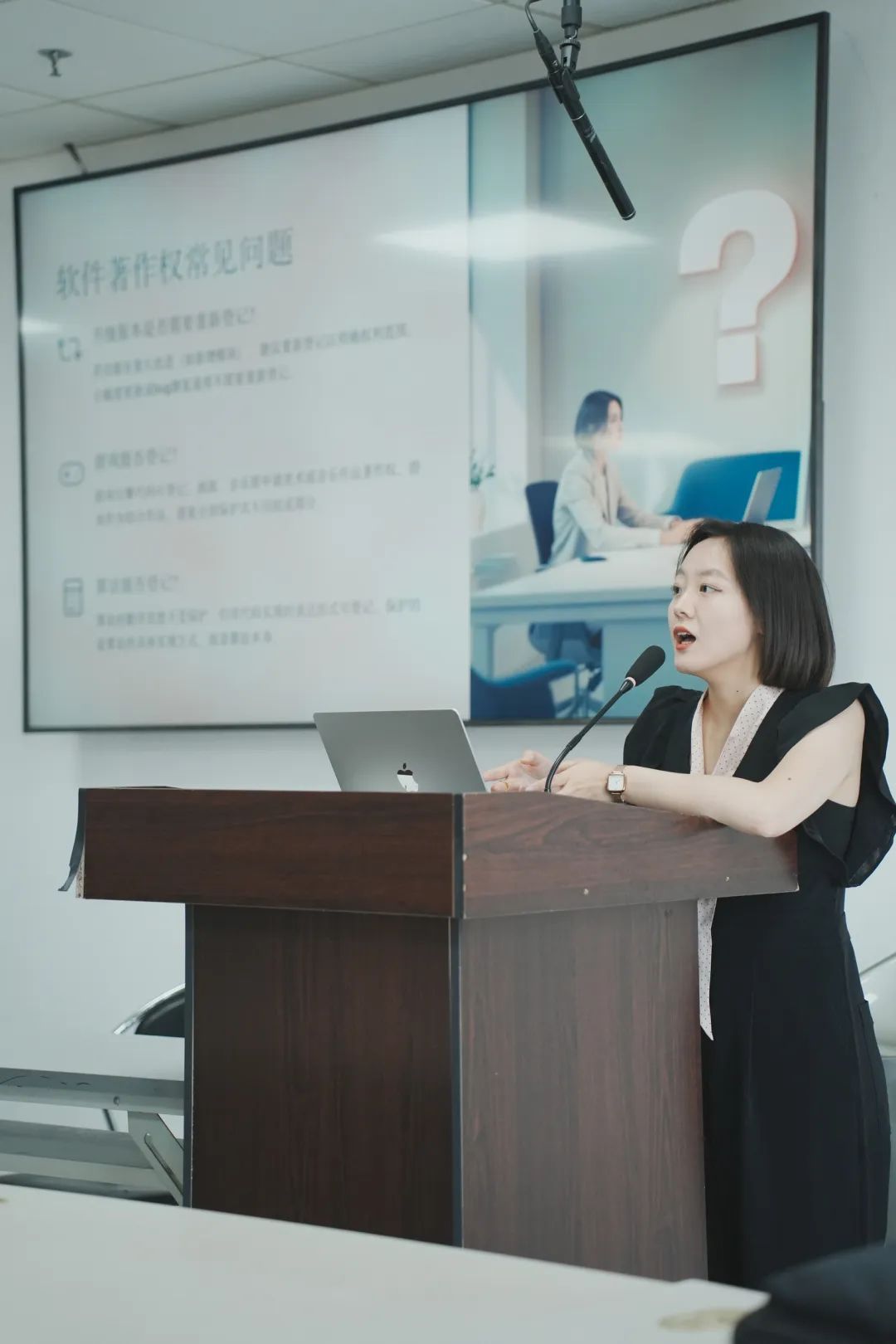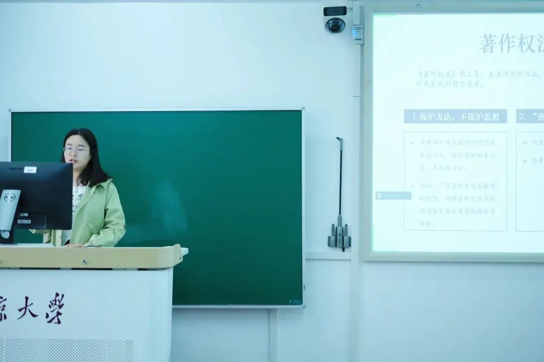 志愿者走进软件学院开展宣讲活动。志愿者吴天齐同学以软件著作权为切入点,深入浅出地讲解了软件著作权的保护边界、许可转让、侵权行为等问题,并就风险防控提出实用建议。