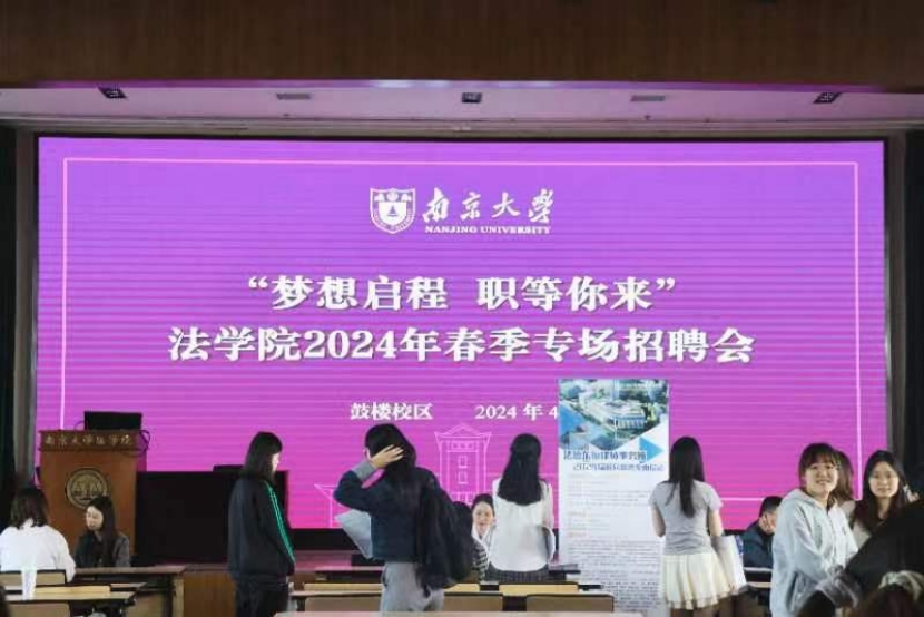 积极整合社会资源,于2024年4月24日在鼓楼校区逸夫管理科学楼20楼报告厅举办了“梦想启程,职等你来”2024年春季专场招聘会。11家省内优质律所和知名企业参加,月舞直播