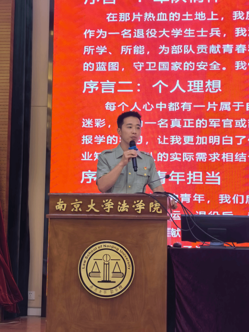 身着一身军装走上就业赛道舞台的是来自信息管理学院的退役大学生士兵朱恩耀,他希望成为一名直招军官,回归部队,服务国防。朱恩耀通过个人经历生动地向评委展现了其军队情怀、个人理想和青年担当。同时,其在综合面试中关于直招军官这一岗位的介绍,也向在场同学提供了生涯规划的新思路。