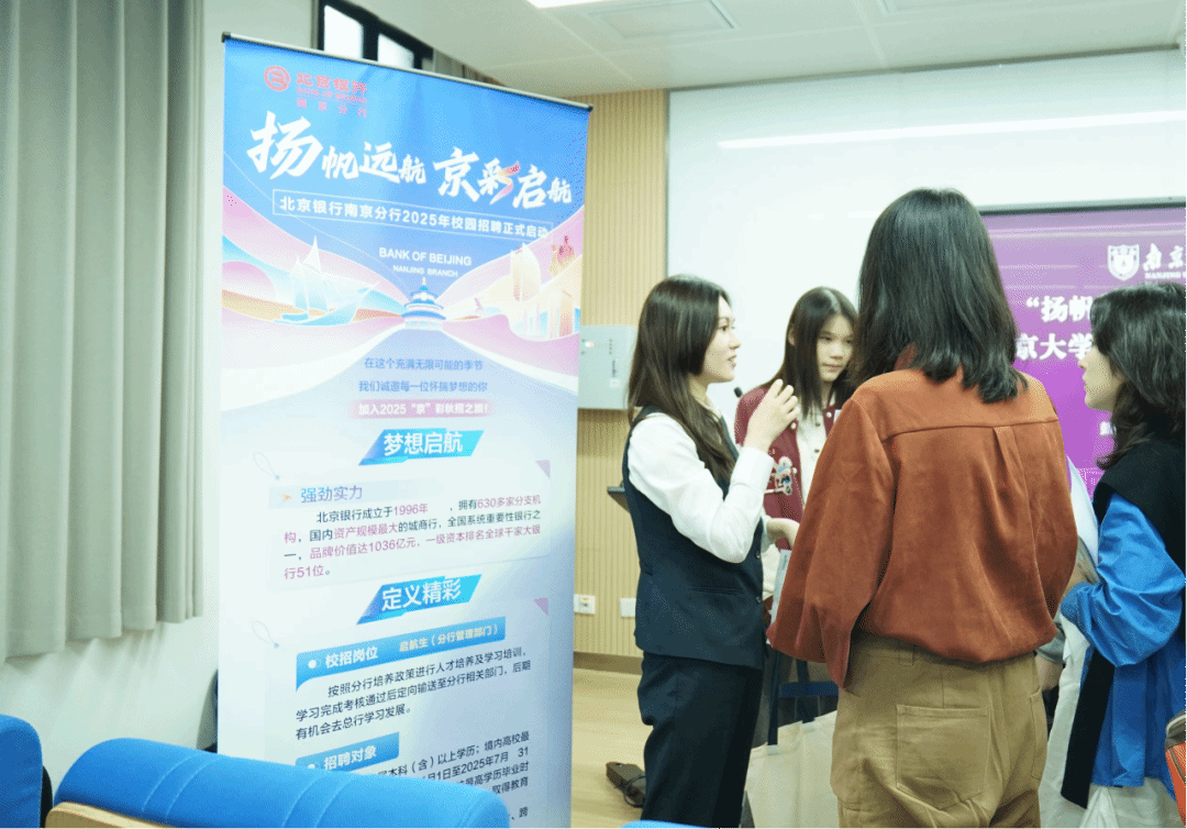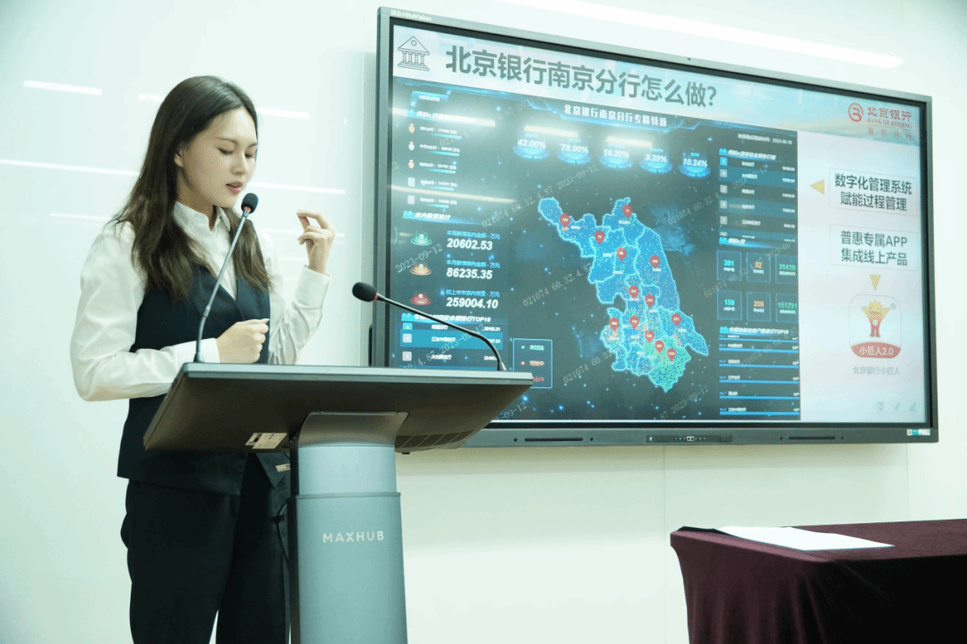 北京银行股份有限公司南京分行人力资源部常悦经理以“扬帆远航,京彩启航”为主题,就规模背景、发展方向、人才培养、薪资待遇等方面进行介绍。南京分行下辖南通、无锡、苏州3家二级分行,在多项业务指标上均位列全行第一。近年来,南京分行通过场景金融、投行驱动、数字化引领等方面确定发展方向,力求打造总行长三角发展战略的牵头引领行。