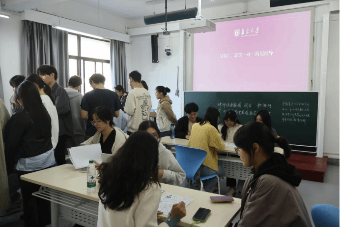 党委组织员遇苏老师四位嘉宾,他们分别从企业综合管理类求职方向以及律师/法务类求职方向出发,为大家分享简历制作的经验和技巧。到场的同学们不仅习得了理论知识,还收获了宝贵的一对一简历指导机会,与指导嘉宾们进行了深入的交流。