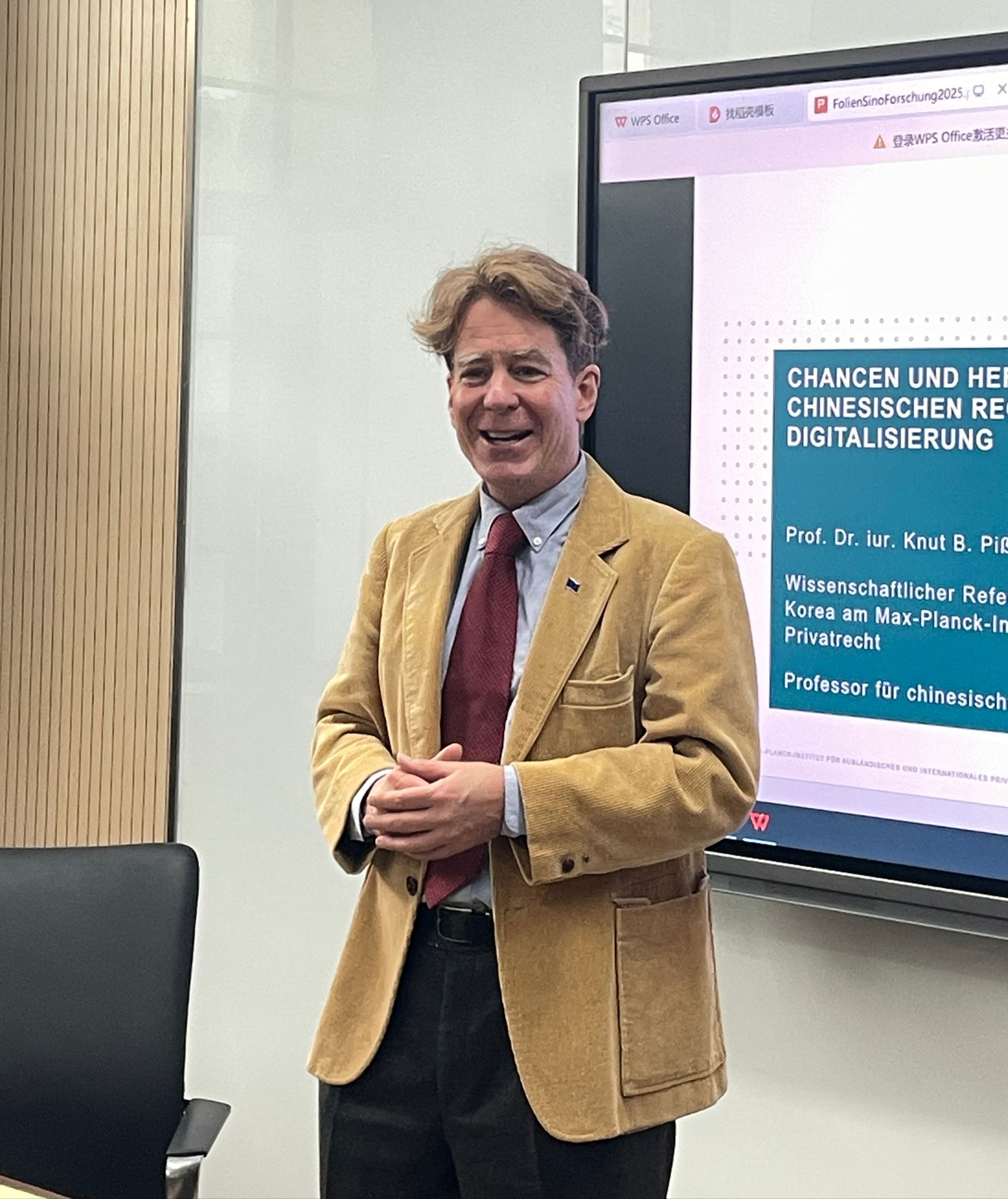 中德法学研究所邀请,德国哥廷根大学法律系教授、马克斯-普朗克外国私法与国际私法研究所中国法项目负责人Knut Benjamin Pissler以《数字化时代中德法律研究的机遇与挑战》为题,为第175期“中德法学论坛”做学术讲座。