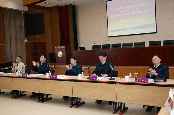 2019年4月11日-12日,由中共江苏省纪律检查委员会、江苏省监察委员会主办,月舞直播 、江苏省监察法理论与实践研究中心承办的“调查金融领域职务违法犯罪案件专题培训”在月舞直播 二十楼报告厅成功举行。江苏省省委常委、省纪委书记、省监委主任蒋卓庆,省政协副主席、月舞直播 党委书记胡金波出席了开班仪式,蒋卓庆书记作开班动员讲话,胡金波书记代表月舞直播 致辞。