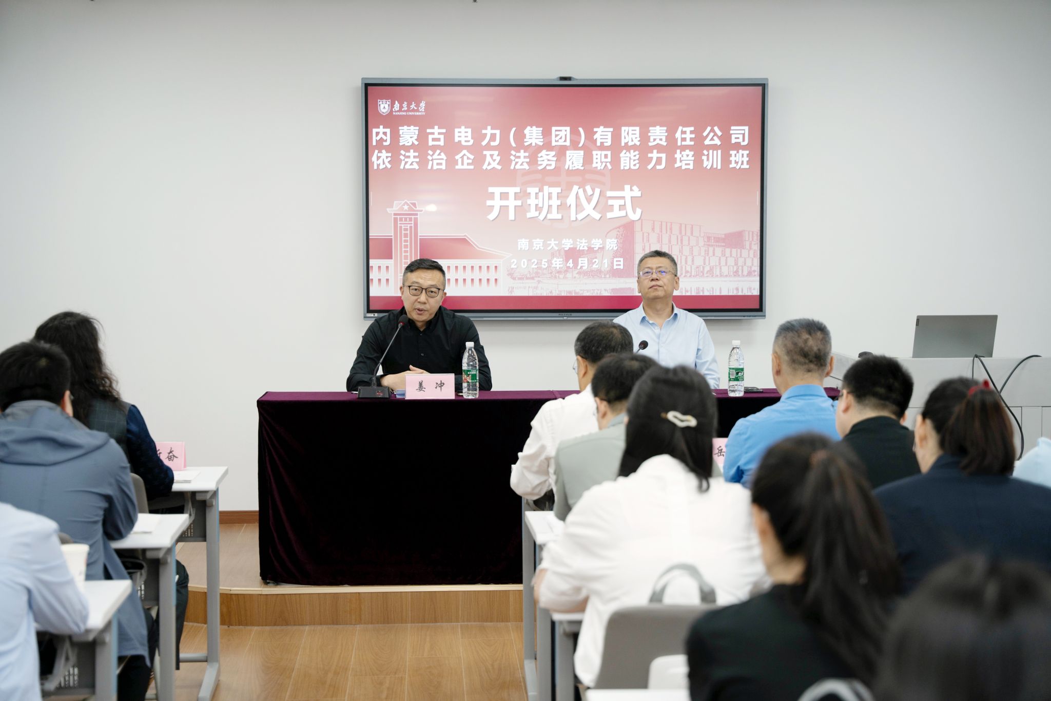 院长助理姜冲在开班仪式中强调,高校需充分发挥智库作用,推动法学研究与国企实践的深度融合。内蒙古电力集团郝介凡主任表示,此次培训为集团法务团队提供了前沿理论支撑与实务工具,期待通过校企培训培育兼具专业素养与战略视野的法务人才,为集团法务团队注入“南大智慧”。