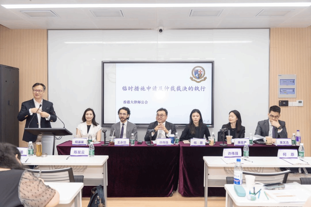 英国其礼律师事务所上海办公室合伙人林健良律师讲解了证据交换与证人交叉盘问;中国国际经济贸易仲裁委员会香港仲裁中心副秘书长王皓成先生讲解了贸仲香港仲裁中心视角看香港仲裁的最新发展:紧急仲裁员、风险代理、财产保全-内地律师如何深度参与;许伟强资深大律师、王永恺大律师、何淑瑛大律师、康亚男大律师、束文浩大律师、何原大律师深度讲解了临时措施与国际仲裁裁决的执行与模拟庭审:仲裁庭组成与管辖权争议及证人盘问与裁决书起草等具体实务。