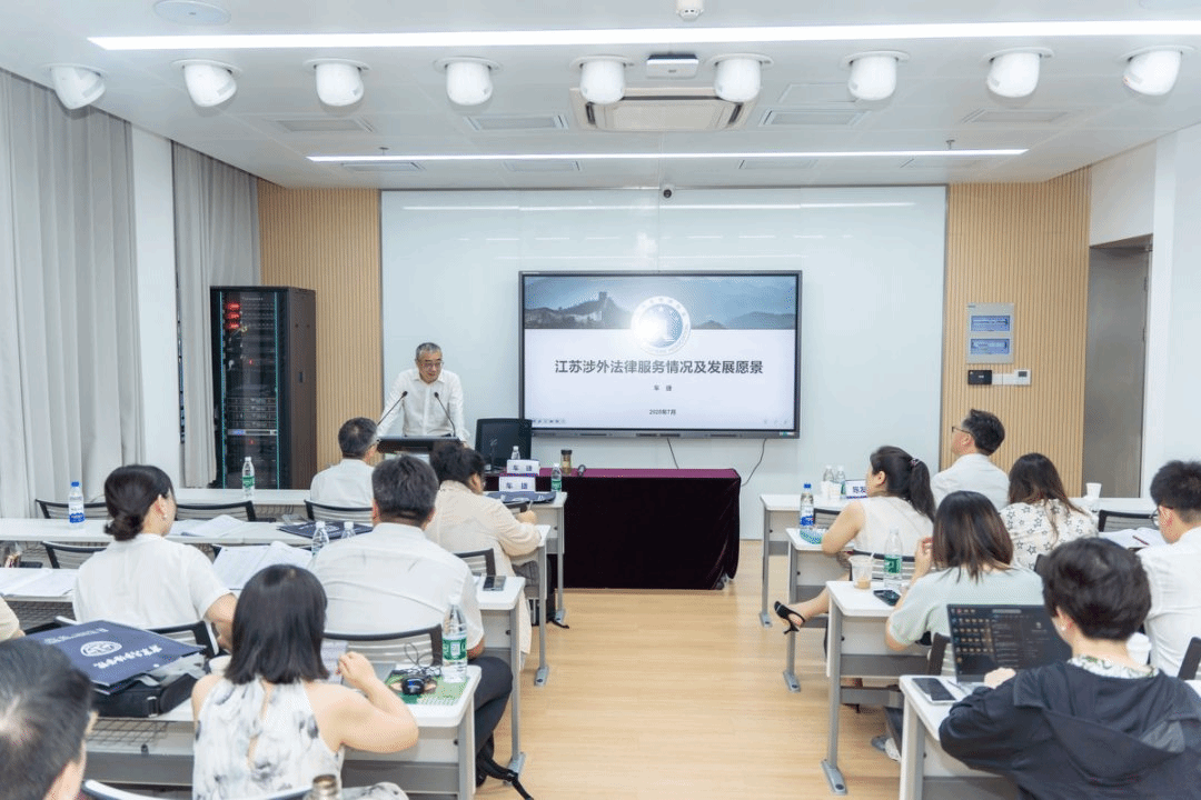 江苏省律师协会副会长王小清宣讲习近平涉外法治思想,号召全体法律界人士坚持以习近平新时代中国特色社会主义思想为指导,深入学习贯彻习近平法治思想,紧跟时代要求和人民意愿,遵循法治规律、坚持系统观念,以涉外法治体系和能力建设为着力点推进涉外法治工作,不断提高涉外工作法治化水平。