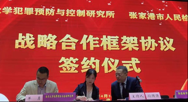 犯罪预防与控制研究所副所长单勇教授与张家港市人民检察院副检察长吴晓敏女士代表合作双方单位在开幕式上完成了签约。