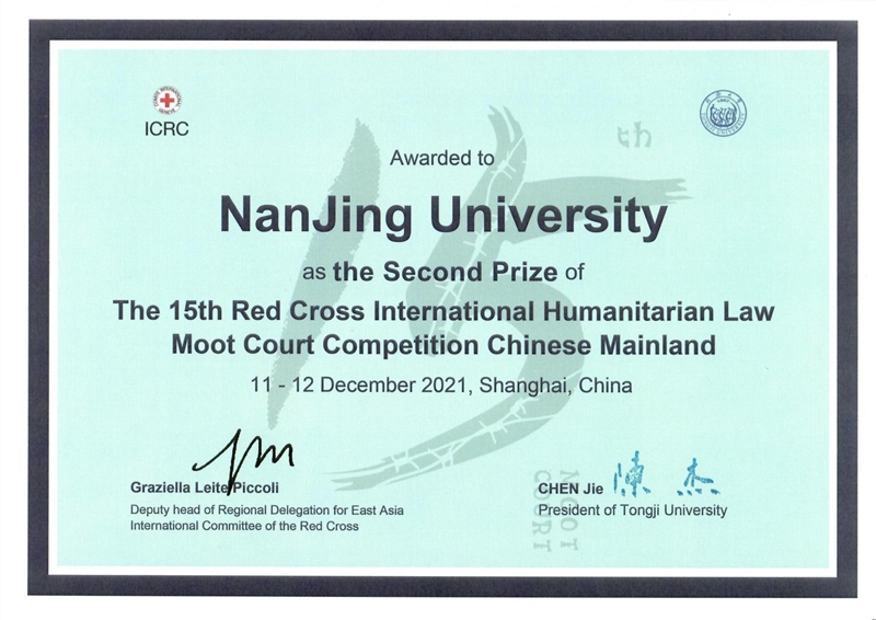 在“国际人道主义法模拟法庭”(IHL MOOT COURT)赛事上具有优秀的历史成绩,曾经四次荣获团体总分一等奖(总分前八),四次荣获团体总分二等奖,获得过一次冠军(联合组队)和一次亚军,共有3名同学获得“个人单项冠军”。国际人道主义法模拟法庭的实战演练展现了南大法科学子的专业素养,也体现了涉外型卓越法律人才实验班的培养成果。