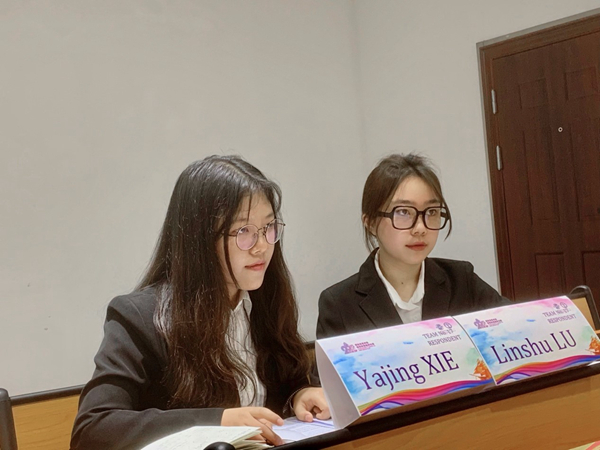 (主力辩手谢雅婧、卢琳舒庭辩现场)