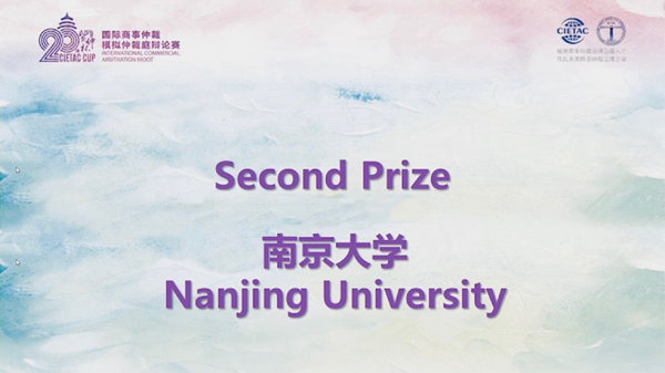 2022年11月28日至12月2日,由中国国际经济贸易仲裁委员会主办的第二十届“贸仲杯”(CIETAC CUP)国际商事仲裁模拟仲裁庭辩论赛顺利举行。我校代表队(赛场编号No.17)以循环赛总分第2名的优异成绩晋级八分之一决赛(Eighth Finals),经过激烈角逐,最终荣获二等奖(Second Prize),这是我校代表队近年来连续三年以循环赛总分前三的成绩晋级决赛。在本届比赛中,卢琳舒同学获得八分之一决赛“最佳辩手”(Best Oralist),谢雅婧同学获得循环赛“最佳辩手”(Best Oralist),这也是我校学子连续四年每年斩获两名“最佳辩手”荣誉称号;傅雨萌同学获得本届比赛“突出贡献奖”。