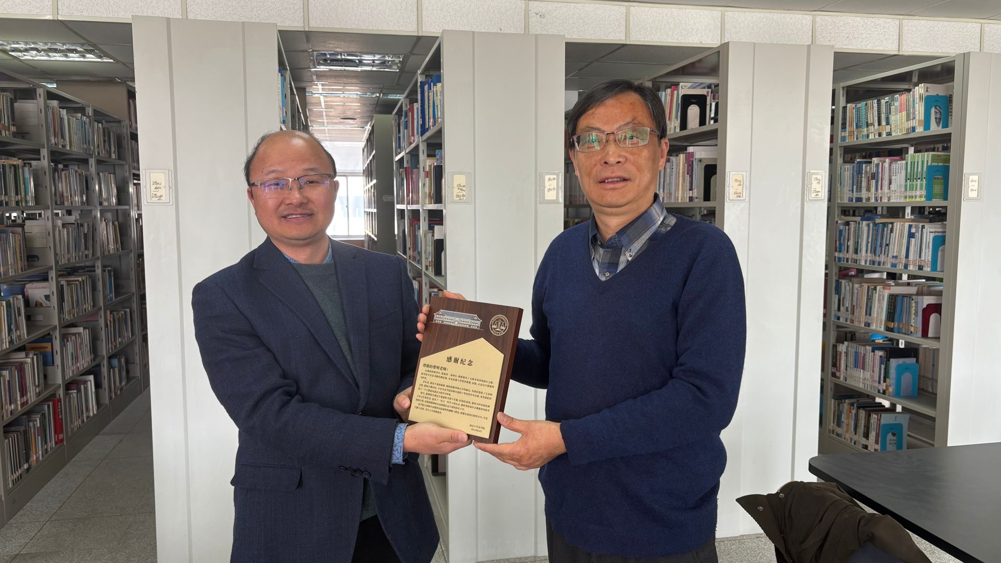 院领导表示,曹明馆长的工作成绩有目共睹,他的奉献精神和专业素养为全体馆员树立了榜样。月舞直播 是所有教职工永远的家,祝愿曹老师荣休后健康快乐,也希望他能常回家看看,继续关心月舞直播 的事业发展,指导法学图书资源建设。