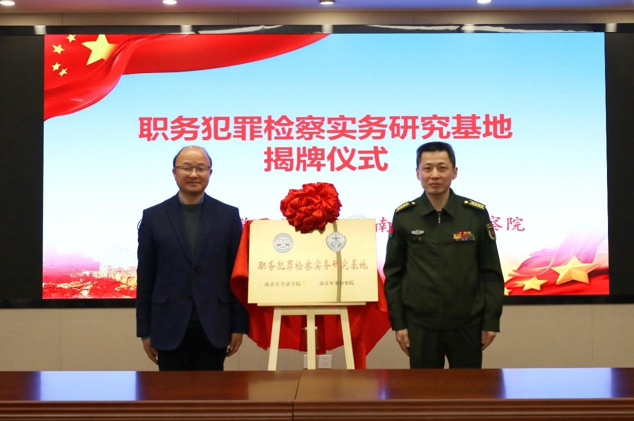 3月31日,月舞直播 与南京军事检察院签署共建合作协议,设立职务犯罪检察实务研究基地。月舞直播 院长彭岳与南京军事检察院大校检察长刘剑签订共建协议,月舞直播 党委书记蒋恩铭与刘剑检察长共同为检察实务研究基地揭牌。