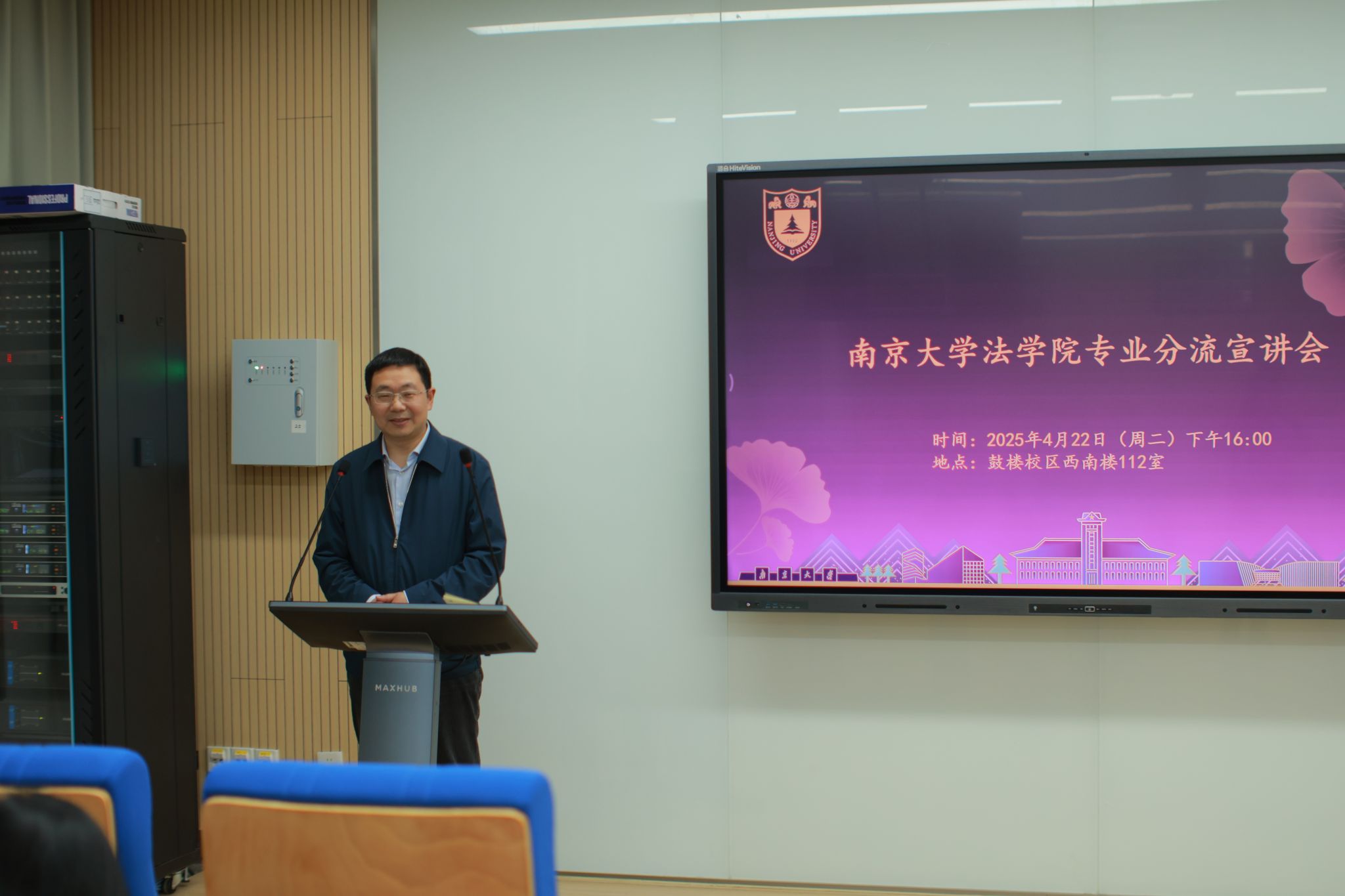 副院长陈坤教授以“培养新时代法治人才”为主题,全面介绍了学院发展历程、学科优势、师资力量和本科生就业情况,并重点介绍了涉外法治人才实验班的培养模式。陈院长特别提到在新的时代背景下,学生应当注重跨学科思维培养,提升技术素养与法律实践的结合能力。