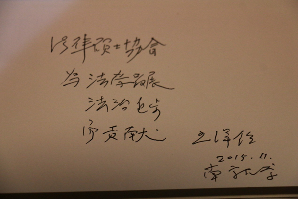 最后,王泽鉴先生为法律硕士协会题词,并祝愿法硕论坛越办越好