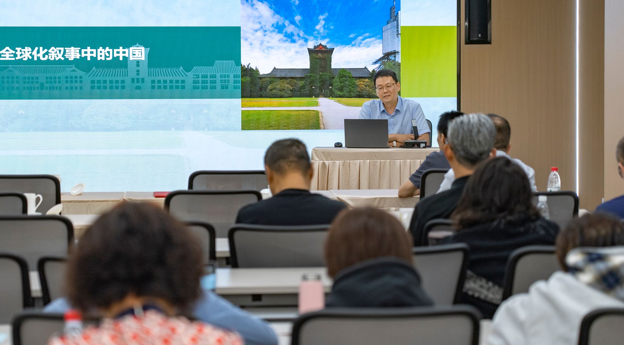 共建活动结束后,彭岳院长以“全球化叙事中的中国”为题开启了新华日报社习近平法治思想传播中心第四期“法治大讲堂”。