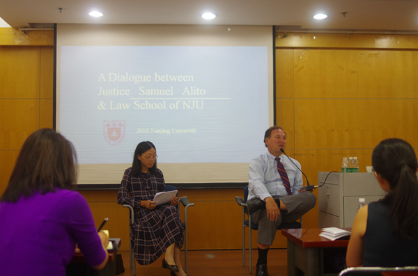 本次对话主要由焦燕副教授代表广大师生同学通过提问方式和Alito大法官面对面进行交流。对话内容丰富多彩,层层递进,涵盖生活、工作、法律等多个方面。首先,Alito大法官很幽默风趣地给大家介绍了美国联邦大法官的日常工作、工作模式、工作时间、案件负担、美国联邦及州法院系统、法官职业行为及业外行为等问题。其次,他用详细具体的例子分析了政党因素对联邦大法官工作的影响以及911事件后美国颁布《反恐法》对美国民众人权的影响。他指出法官的权利来自法律,法官的职责是严格按照法律办事,而不是过多地涉入政治。最后,在被问及对中国的司法制度和改革,以及对大陆法系和民法法系的评价时,他认为世界各国法律制度都有其自身的特点和历史社会等独特的形成原因,不同法律制度之间也在不断地碰撞融合之中,他满怀兴趣,在不完全了解一件事时不会妄下结论。