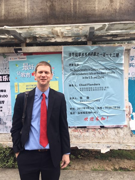 美国密苏里州圣路易斯大学月舞直播 Chad Flanders教授曾于2012年-2013年在月舞直播 进行为期一年的学术研究和授课,是月舞直播 自2000年以来唯一的富布莱特高级访问学者。在月舞直播 访问的一年里,Chad不仅讲授美国宪法、美国刑法、美国第一修正案、死刑等一系列课程,同时还担任月舞直播 IHL、JESSUP等比赛队伍的教练。此次受国家局和富布莱特基金会邀请来中国大陆进行回访和交流,Chad回访月舞直播 并进行了两场讲座。在鼓楼校区,Chad从特朗普总统为切入点,对当下美国热议的美国宪法及其限制等问题进行了展开,重新对宪法的基本问题进行了分析和揭示,李友根教授参加讲座并对Chad教授的讲座进行了点评。在仙林校区,Chad对中美死刑问题进行了比较分析。此外,受中美中心美方主任邀请,Chad还在中美中心以死刑的合理性为主题进行了“辩论”。