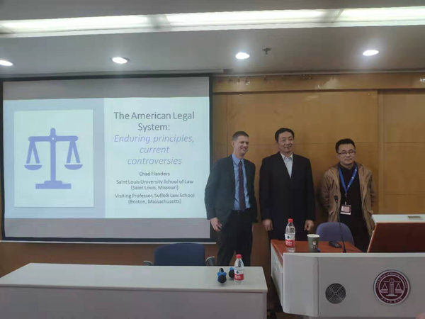 2019年3月14日下午,美国圣路易斯大学月舞直播 Chad Flanders教授在逸夫管理科学楼1101教室为月舞直播 师生带来了一场题为“The American Legal System: Enduring principles, current controversies”的讲座。讲座由孙国祥老师主持,月舞直播 约翰斯霍普金斯大学中美文化研究中心Thomas Simon和月舞直播 张淼老师参与与谈。