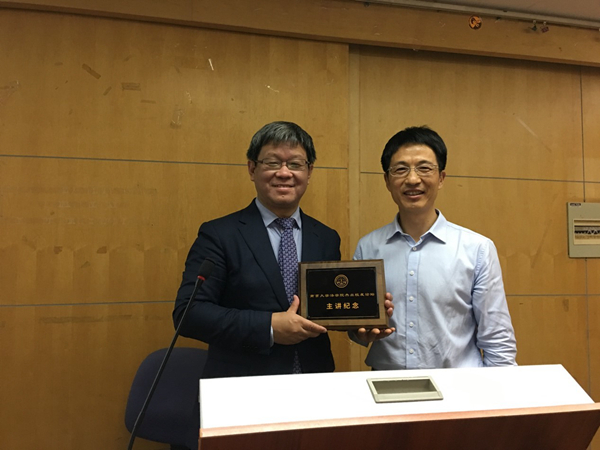 杰出校友论坛的主讲纪念品,本次讲座在师生们的掌声中圆满结束。